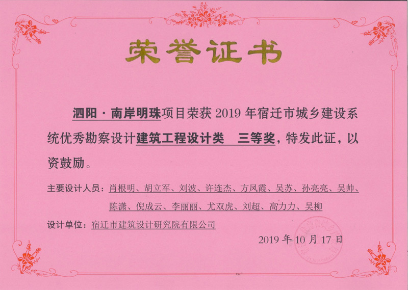 泗陽.南岸明珠建筑工程設(shè)計(jì)三等獎(jiǎng)