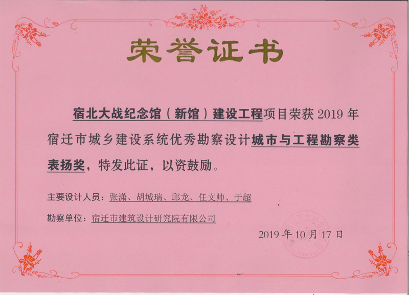2、宿北大戰(zhàn)紀(jì)念館(新館)建設(shè)工程 城市與工程勘察類表揚(yáng)獎