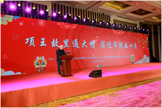 • 2024年2月4日,農(nóng)歷正月十五(元宵節(jié)),我院舉辦宿遷市建筑設(shè)計研究院五十周年慶典活動。湖濱新區(qū)黨工委副書記、管委會主任陳磊出席活動并致辭,活動由我院董事長兼院長胡立軍主持。